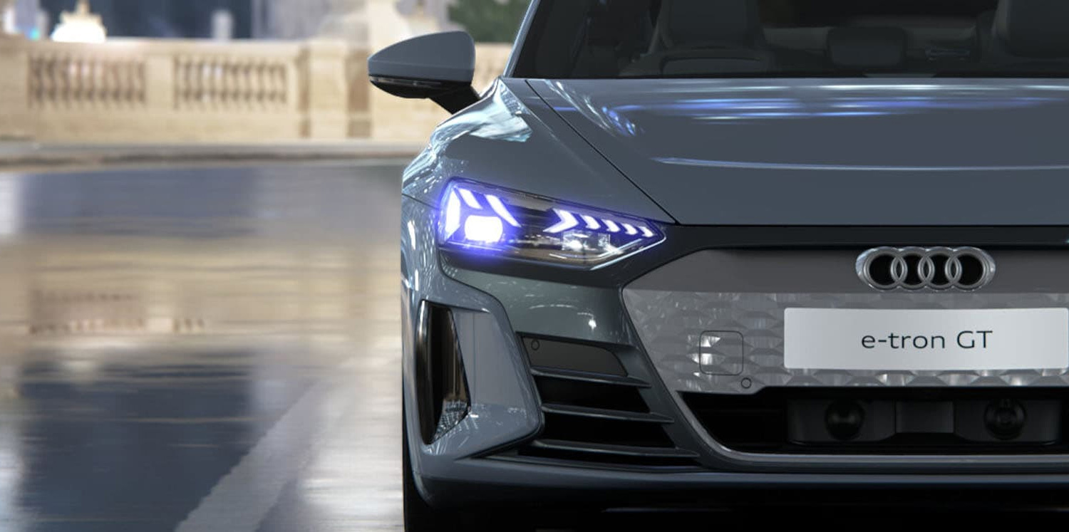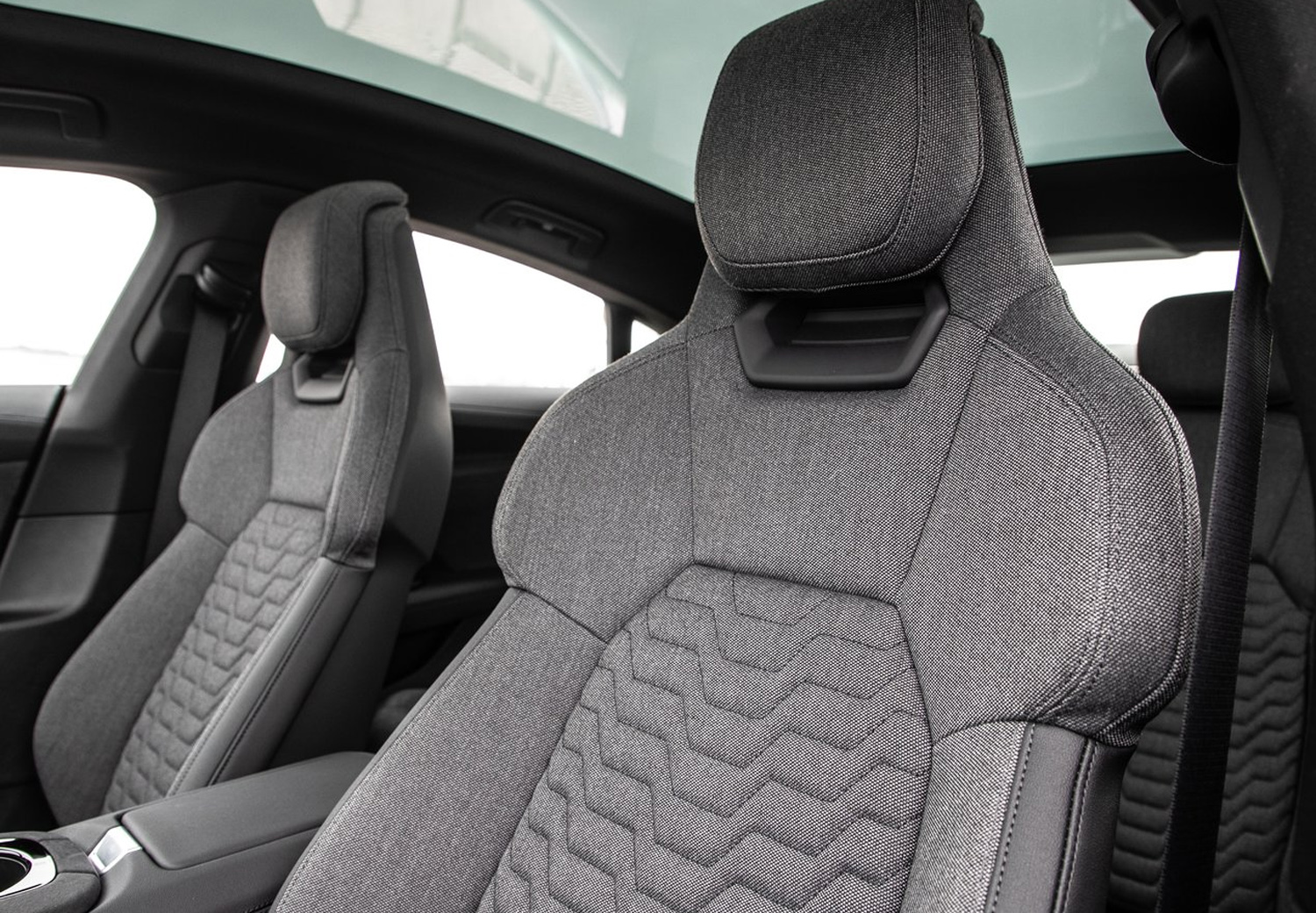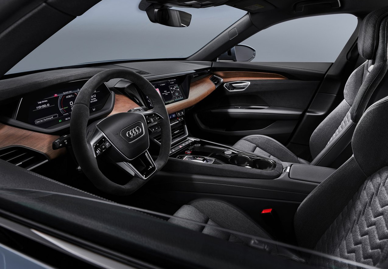Inside, the e-tron GT quattro and RS e-tron GT design marries sporty ergonomics with passenger comfort. Even with their tapering rooflines, both cars effortlessly house up to 5 occupants. In front of the driver, the continuous horizontal lines of the dash hold a centre instrument console and touch screen panel that just seem to float. And front Sport seats, available in leather or leather-free, give optimum support, even when cornering at speed.